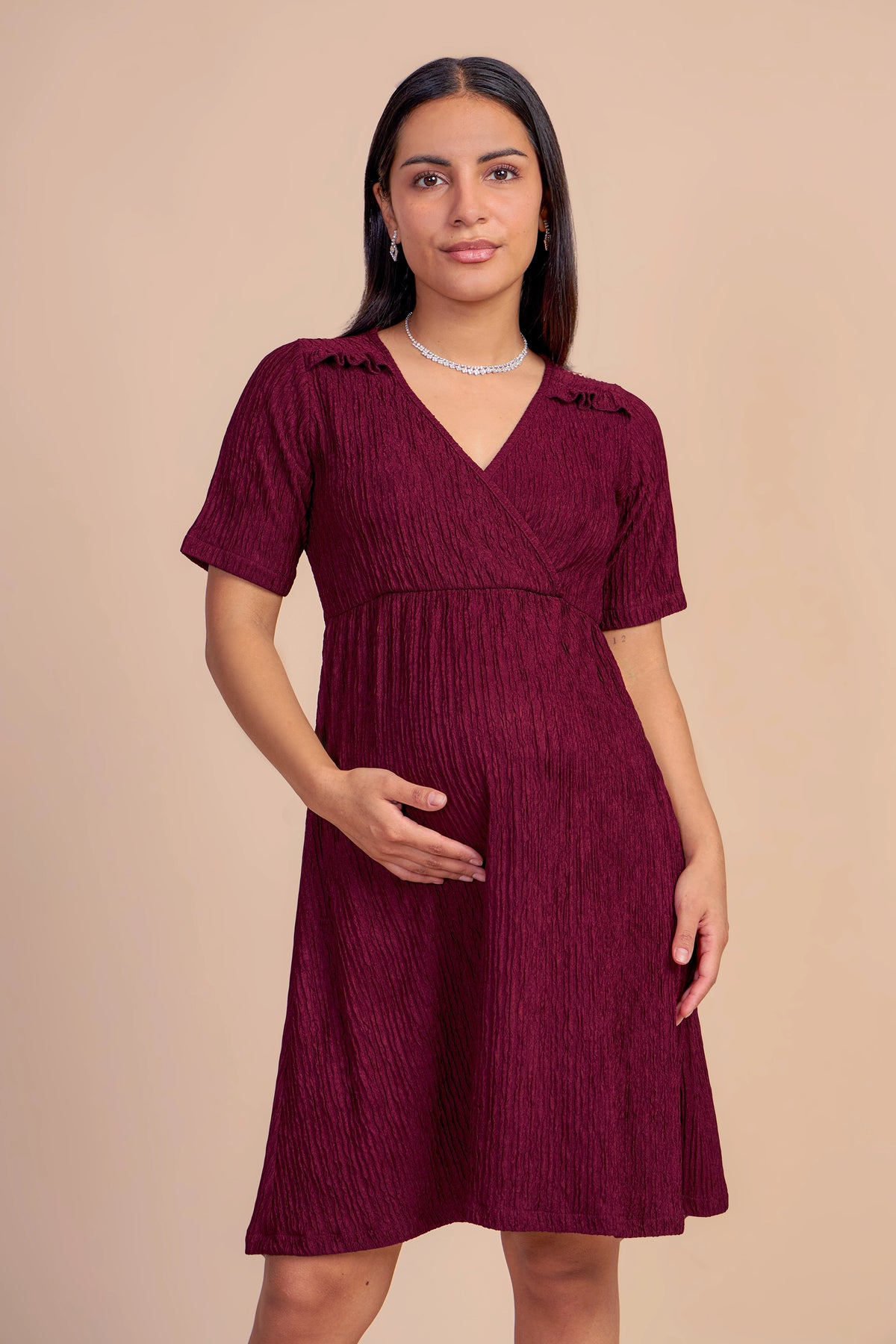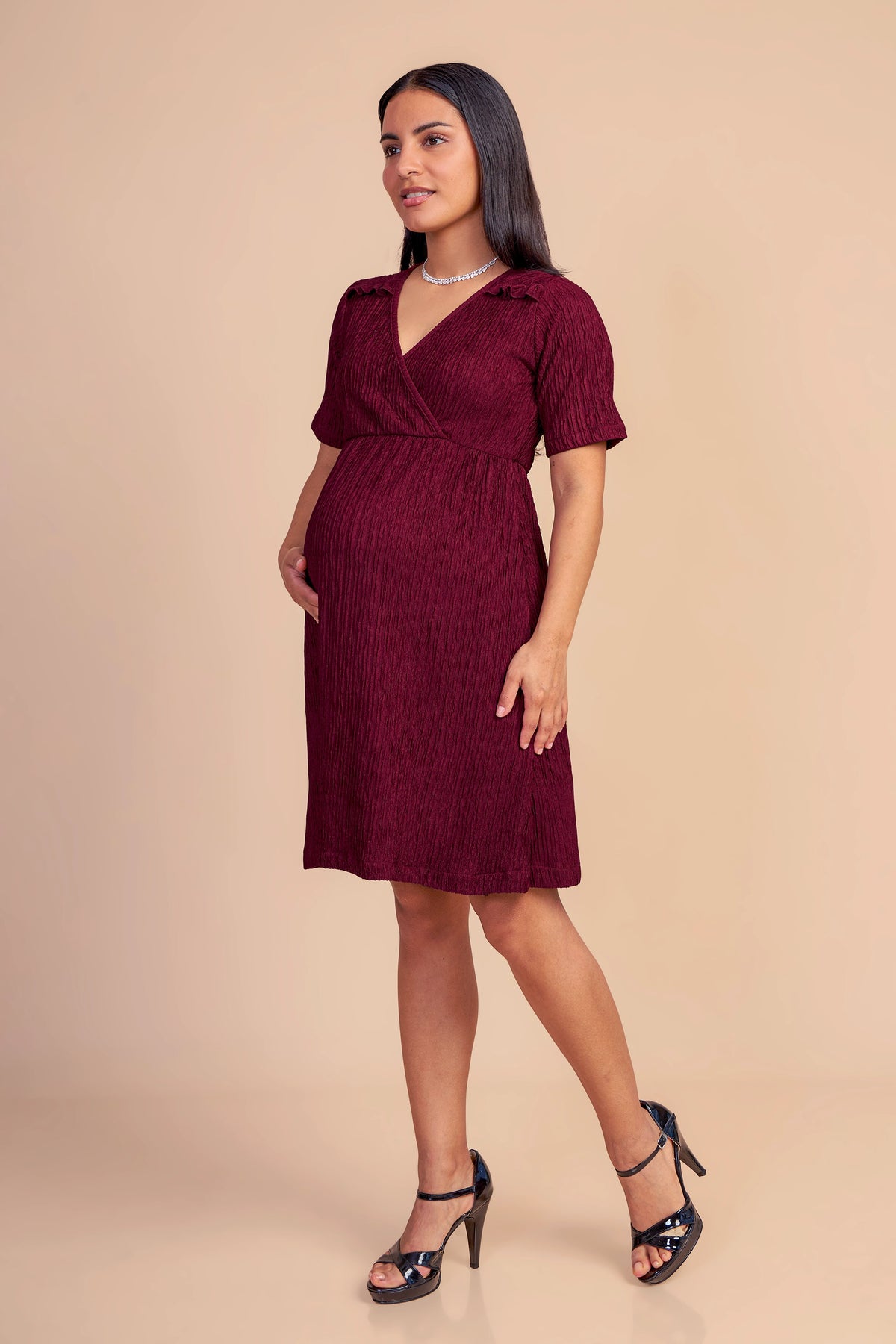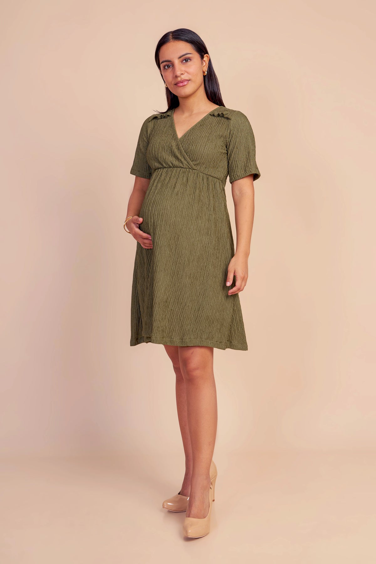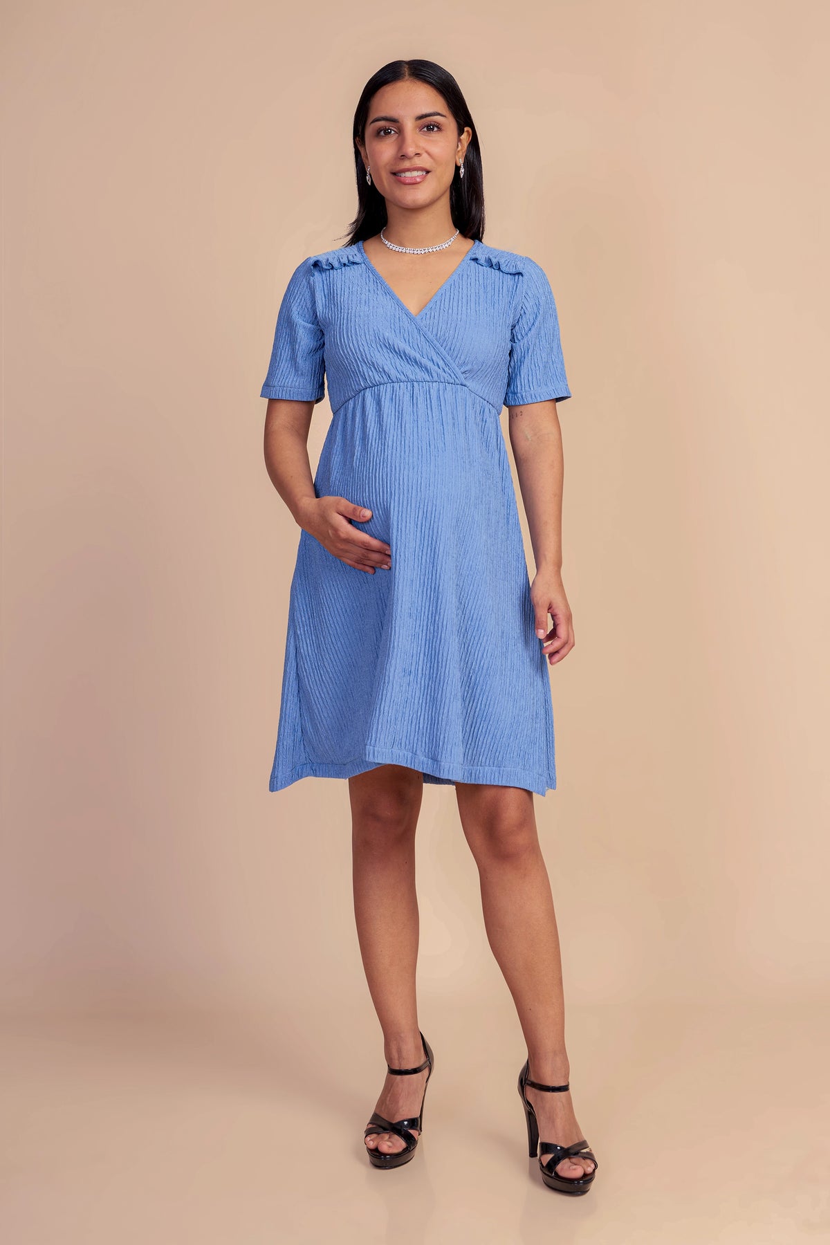 El vestido Alina, combina elegancia y comodidad. Su falda corte A y el detalle bajo el busto realzan la silueta de la futura mamá, mientras que los delicados acabados en la parte superior añaden un toque sofisticado. Ideal para ocasiones especiales o para lucir arreglada sin perder confort.