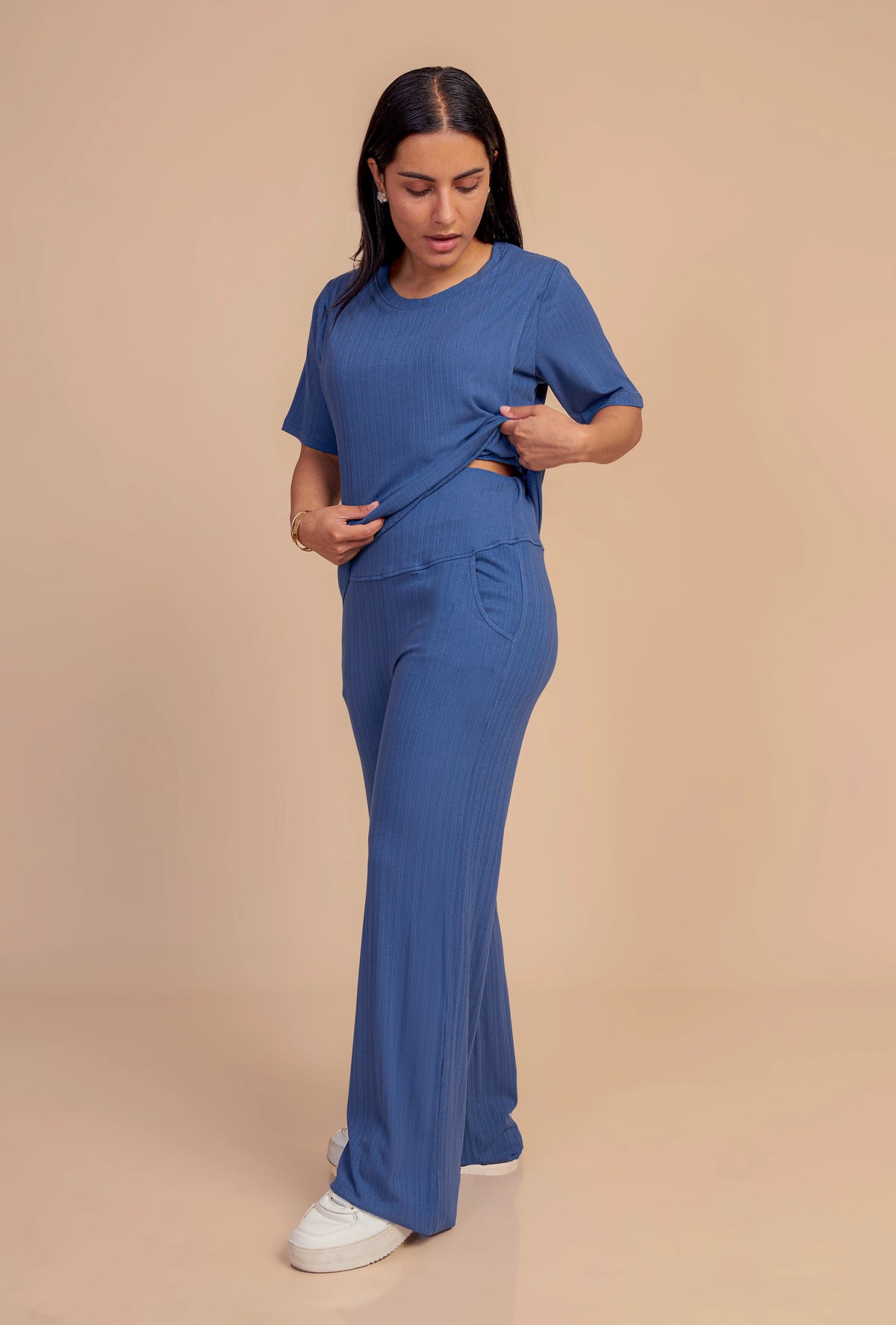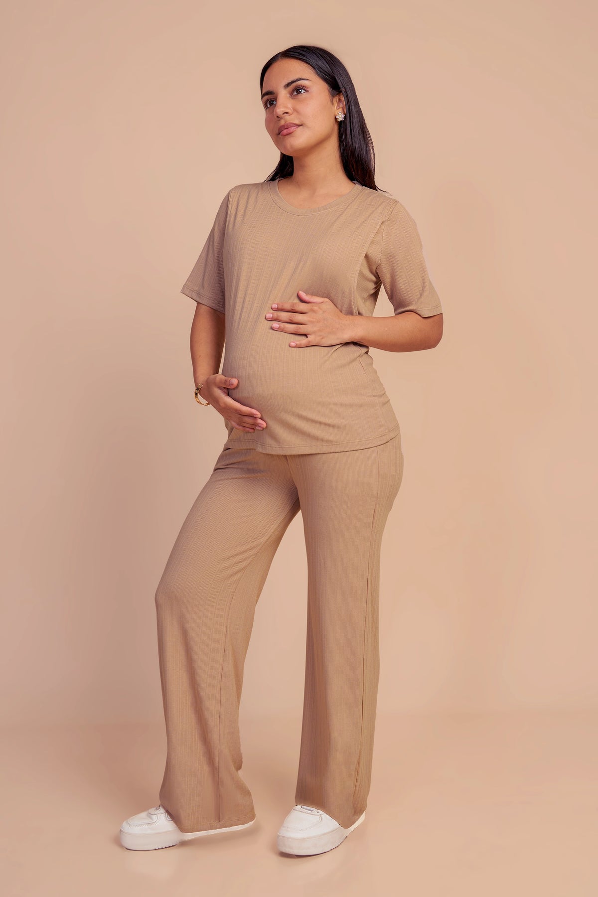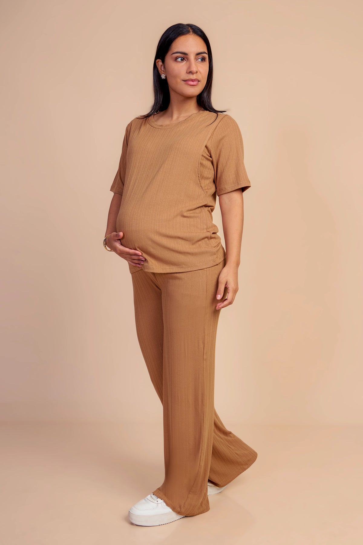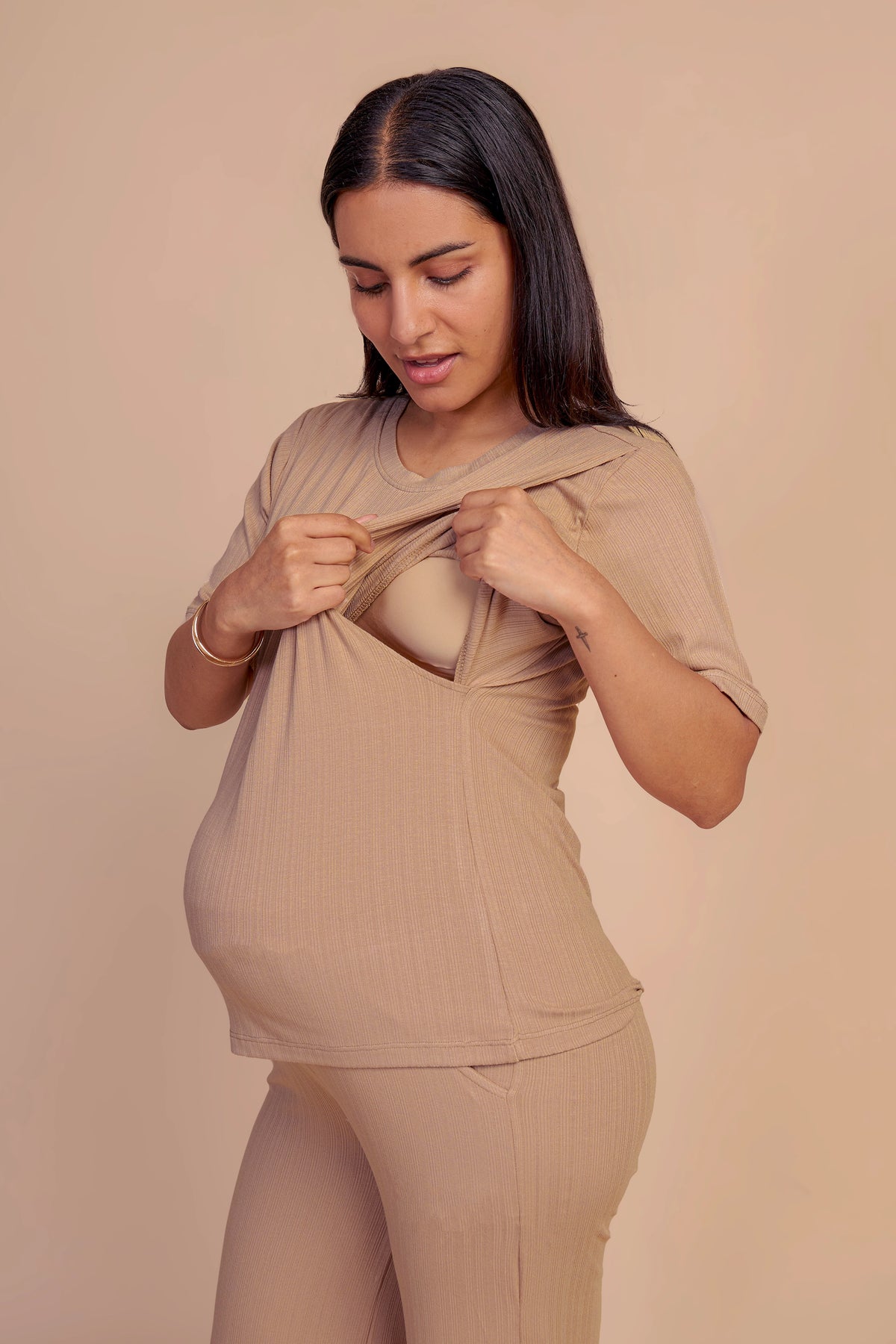 Este conjunto de maternidad y lactancia está confeccionado en rib de algodón, una tela suave, fresca y con la elasticidad ideal para acompañarte en cada etapa. Su polo incluye acceso práctico para lactancia, mientras que el pantalón cuenta con elástico en la espalda que brinda soporte y comodidad a tu barriguita en los últimos meses. Perfecto para el día a día, manteniéndote siempre cómoda y con libertad de movimiento.