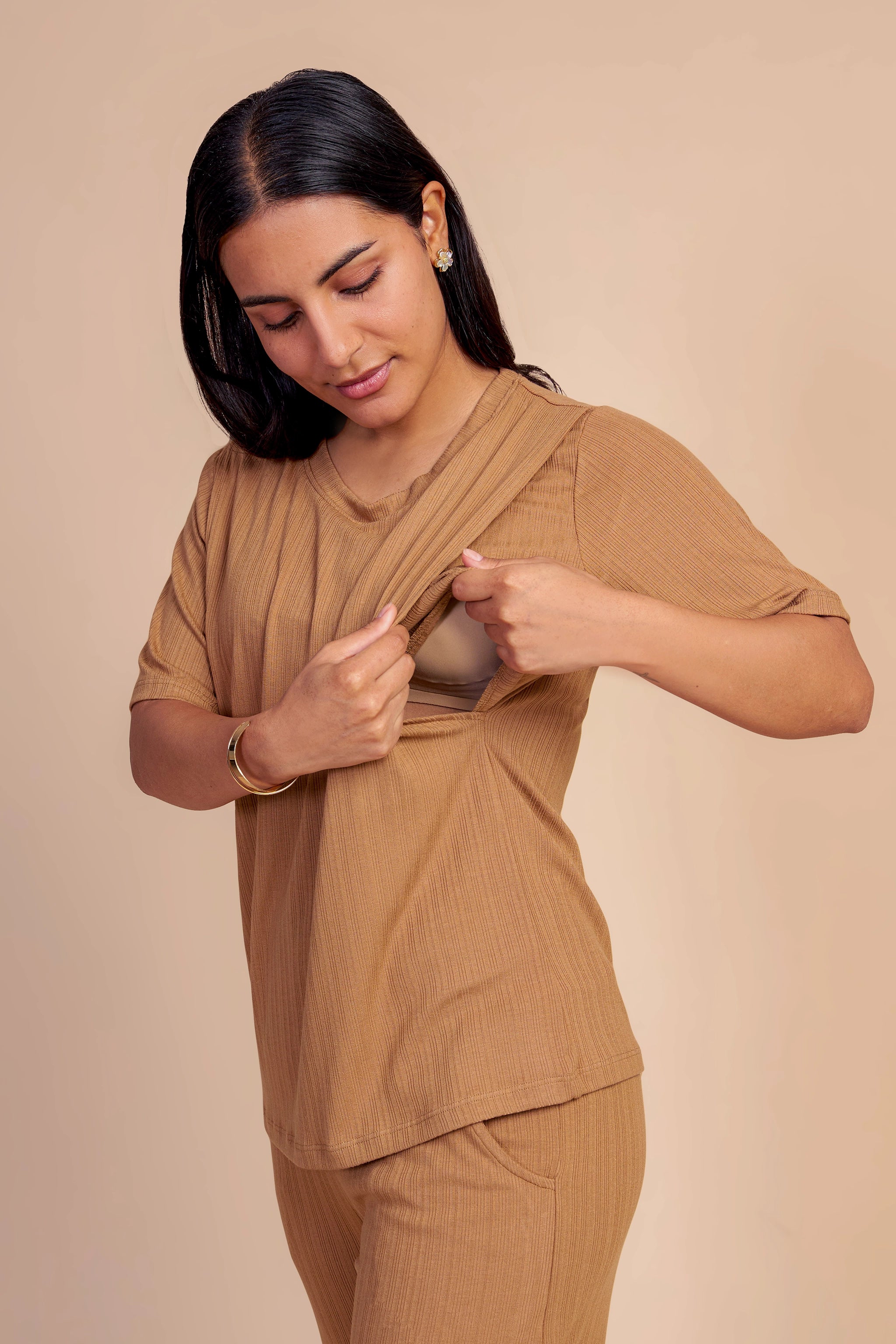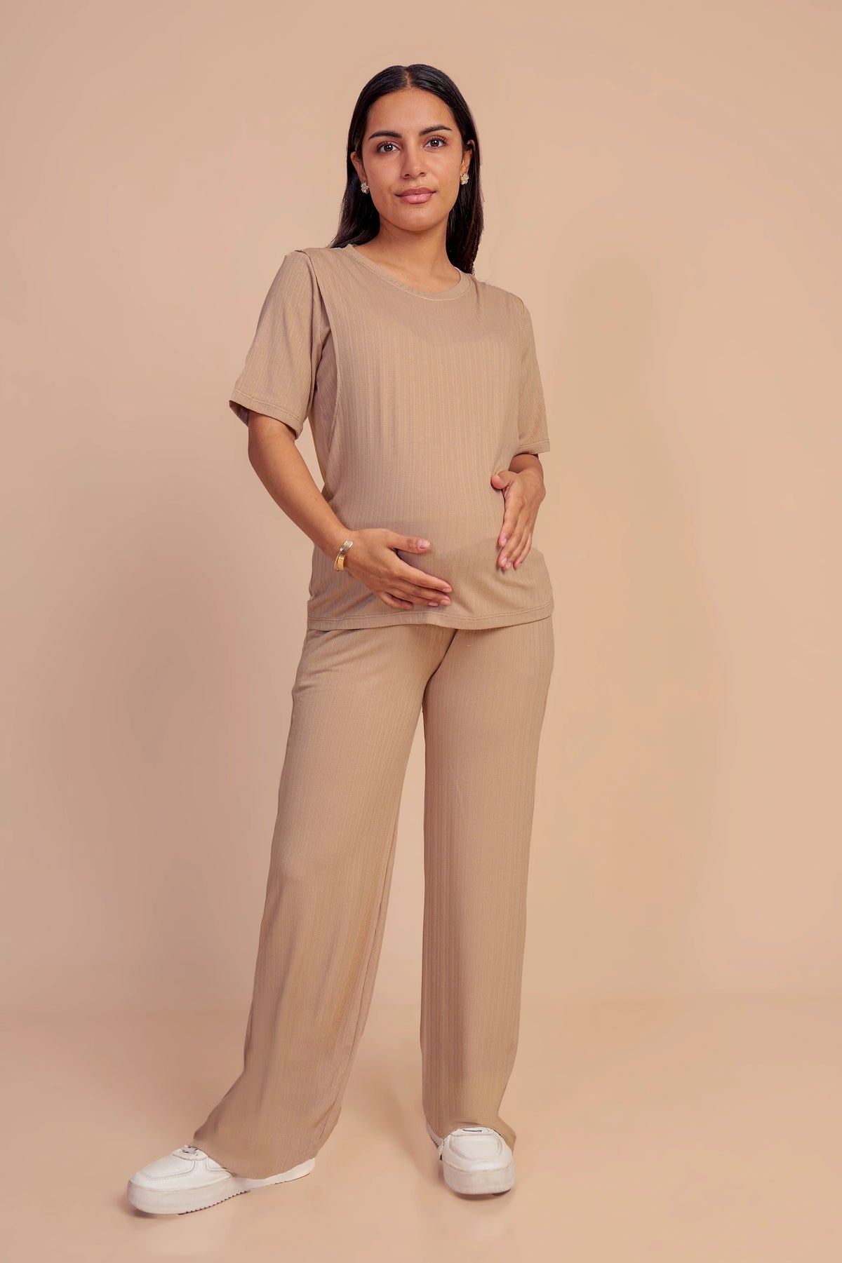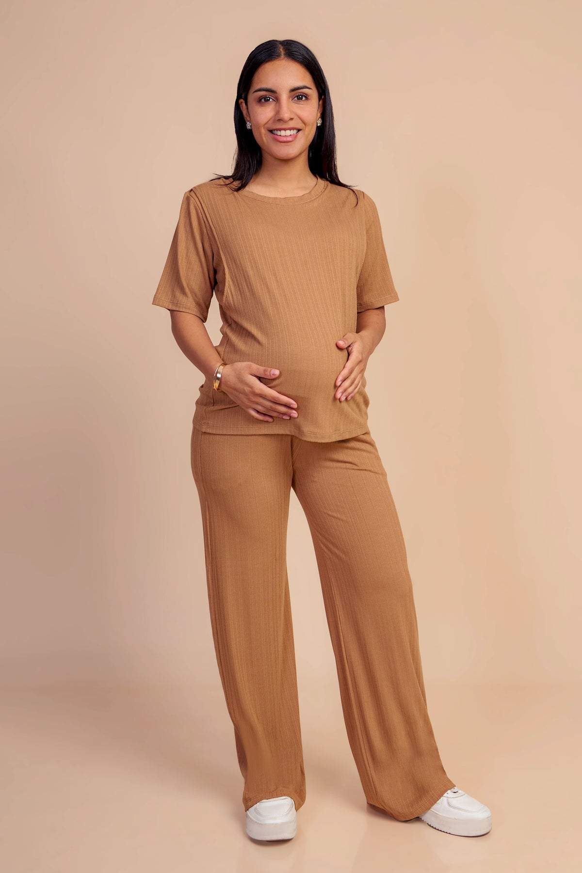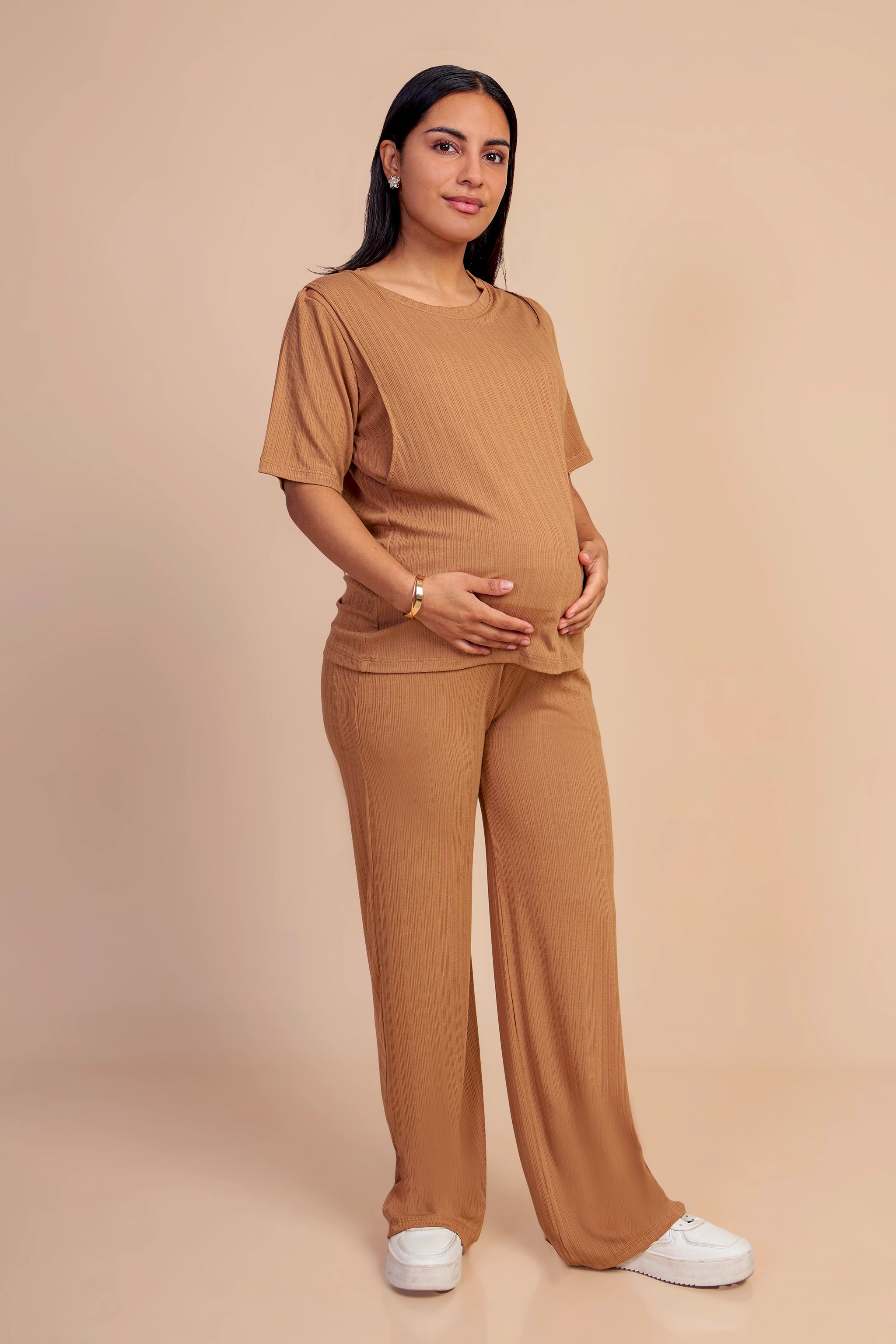 Este conjunto de maternidad y lactancia está confeccionado en rib de algodón, una tela suave, fresca y con la elasticidad ideal para acompañarte en cada etapa. Su polo incluye acceso práctico para lactancia, mientras que el pantalón cuenta con elástico en la espalda que brinda soporte y comodidad a tu barriguita en los últimos meses. Perfecto para el día a día, manteniéndote siempre cómoda y con libertad de movimiento.
