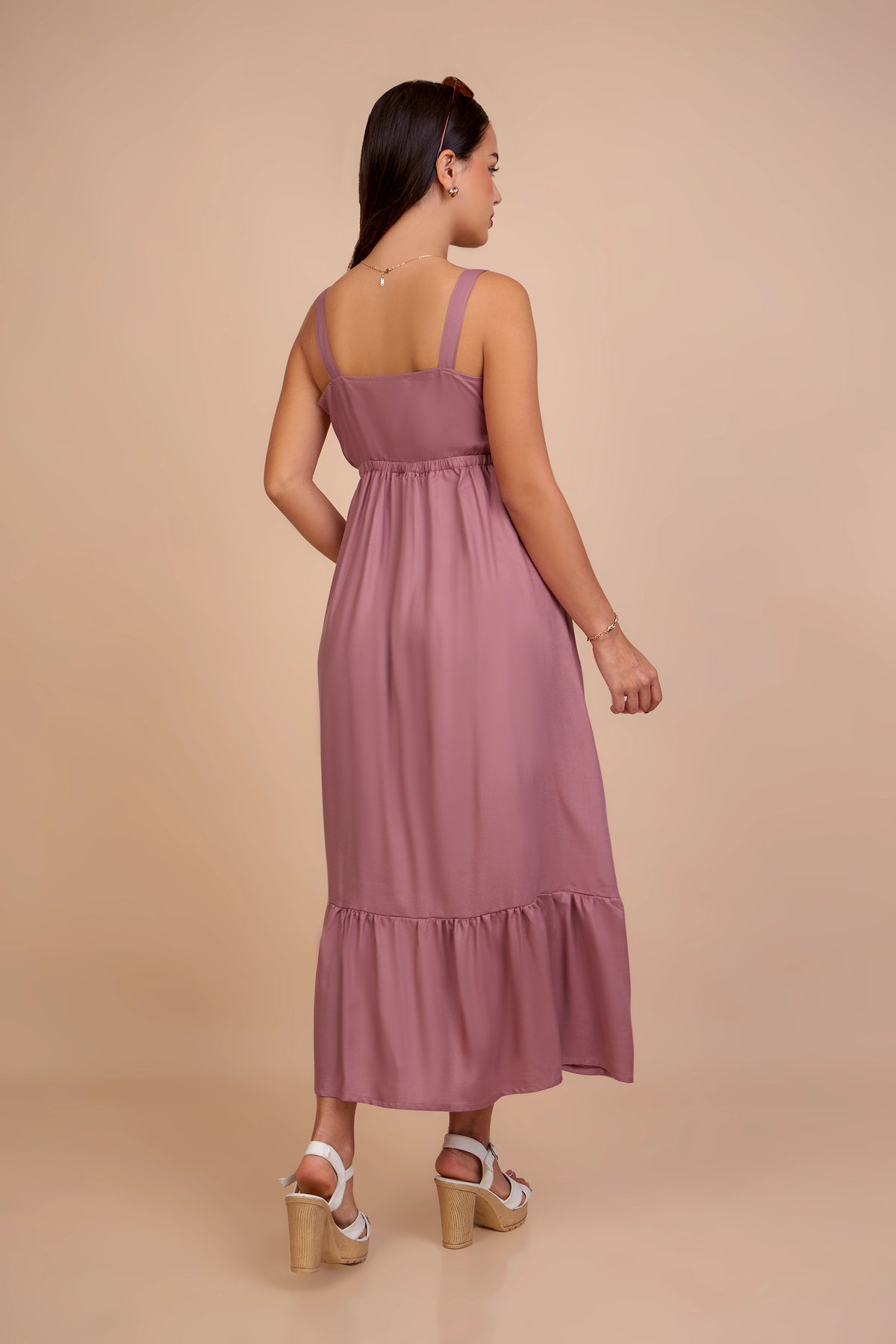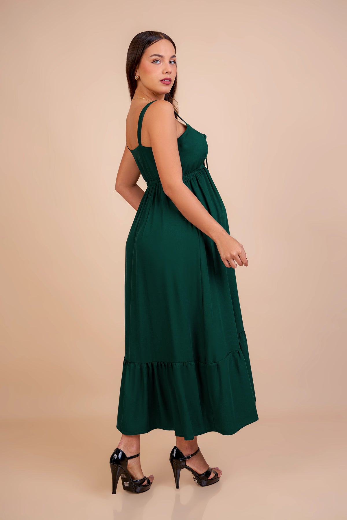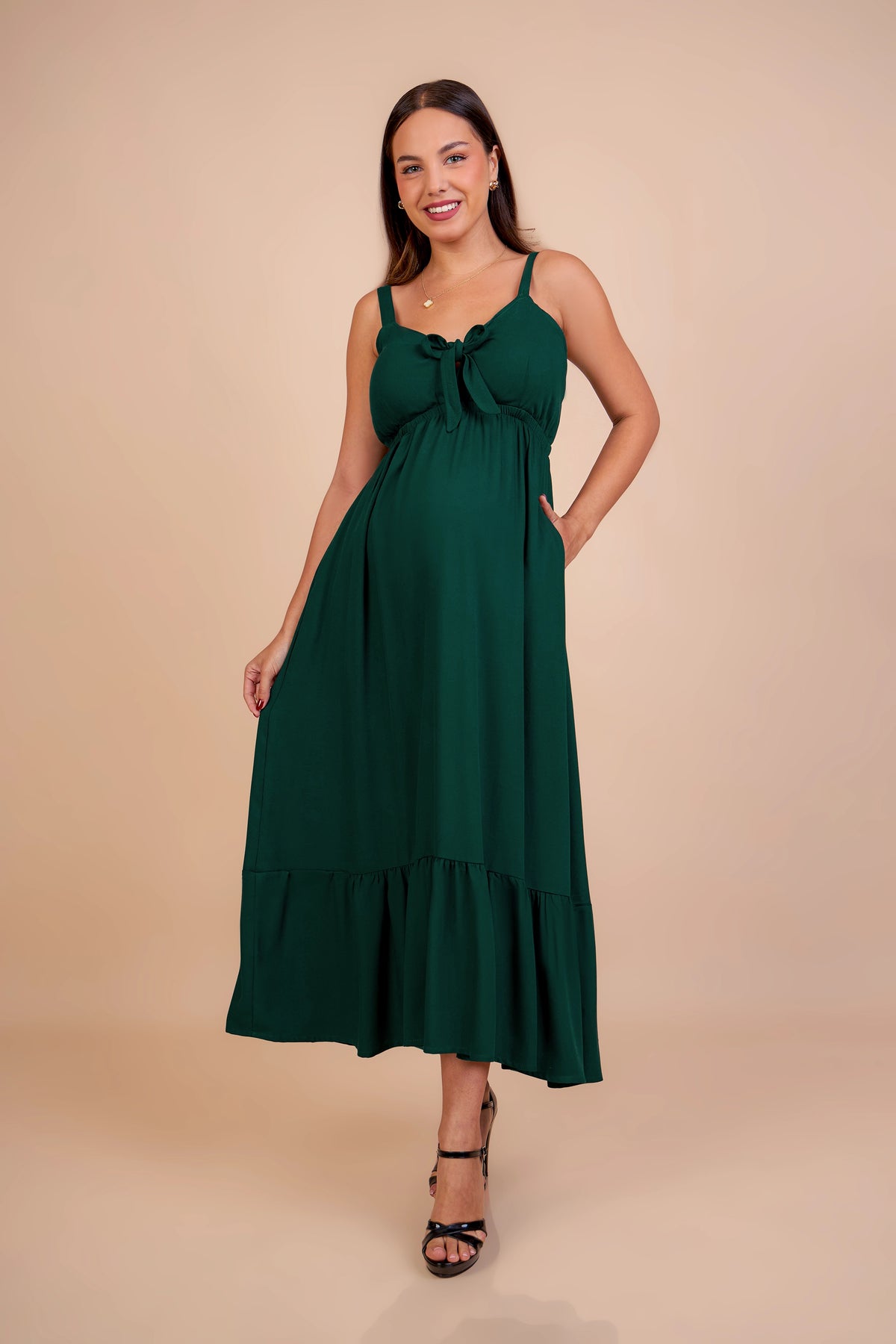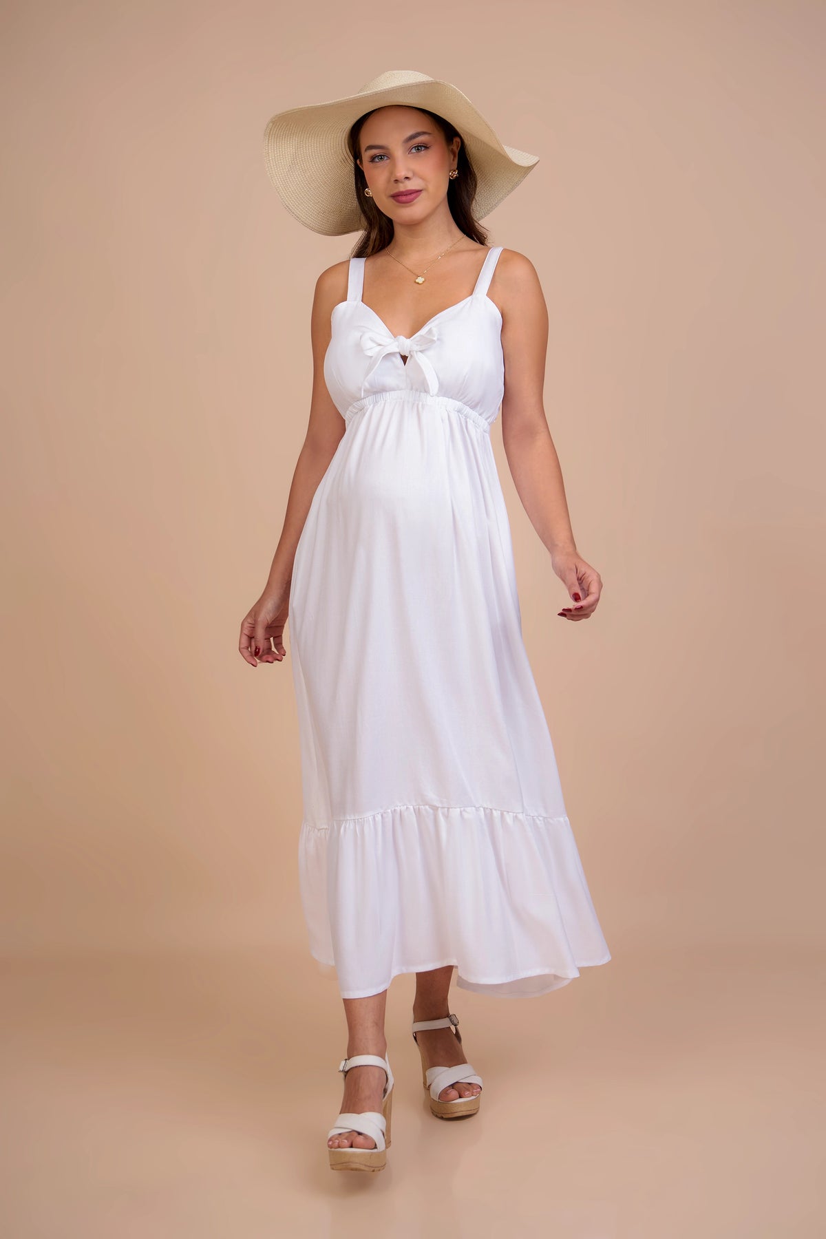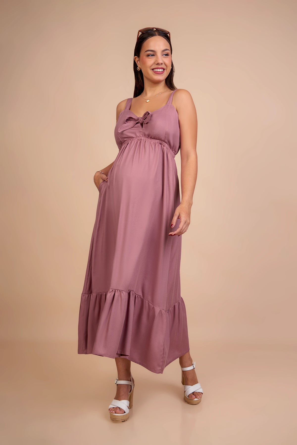 Viste refinada sin perder la frescura, con la elegancia del vestido Antonella. Perfecto para ocasiones especiales. Te hará sentir natural y romántica gracias a su falda larga y ligera. La parte del busto lleva unas lindas copas. Se regula con un lindo nudo en el pecho, perfecto para una lactancia fácil y sofisticada.