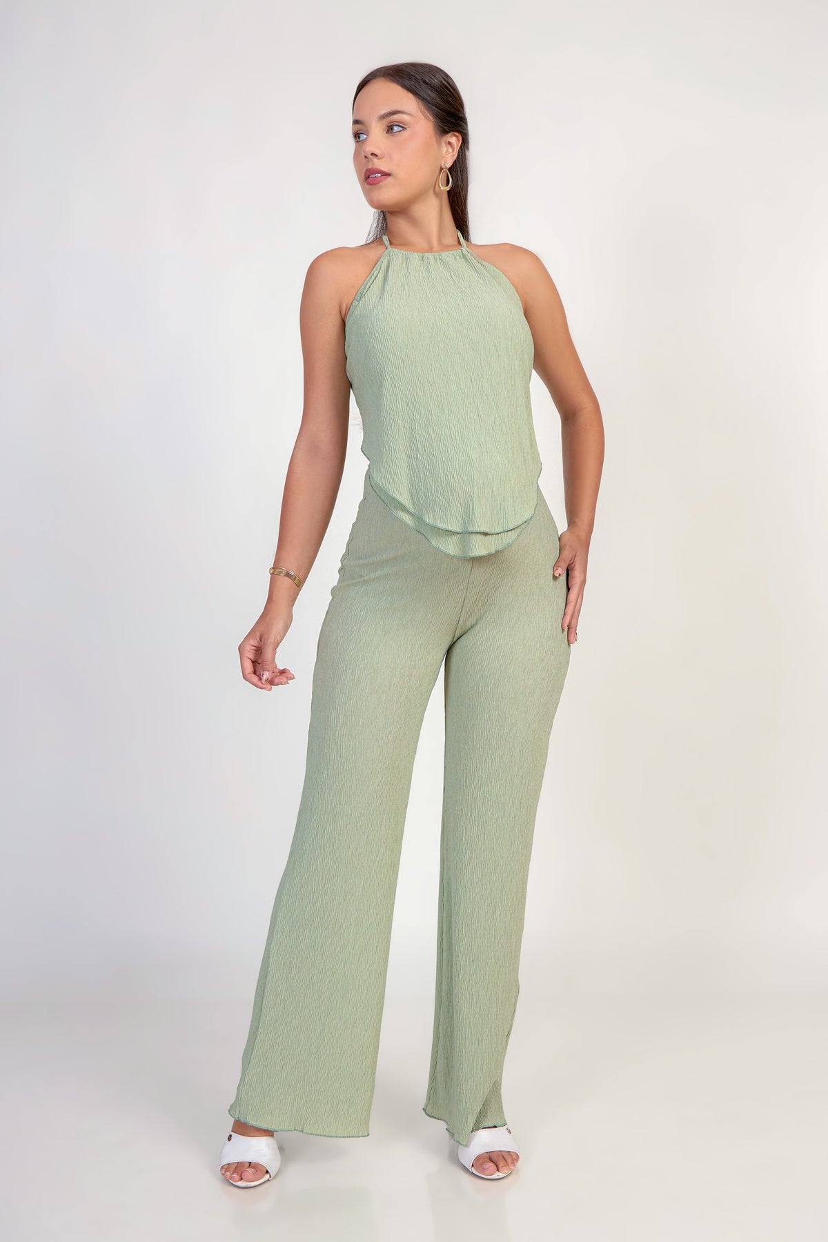 Pensado para acompañarte en cada etapa del embarazo con comodidad y estilo. El polo de amarre regulable, con doble capa frontal, se adapta suavemente al crecimiento de la barriguita y brinda una caída favorecedora. El pantalón de tiro alto, con regulador, ofrece soporte cómodo sin apretar, permitiendo que la prenda se use durante todo el embarazo. Un conjunto versátil, fresco y moderno, ideal para looks casuales o salidas especiales.