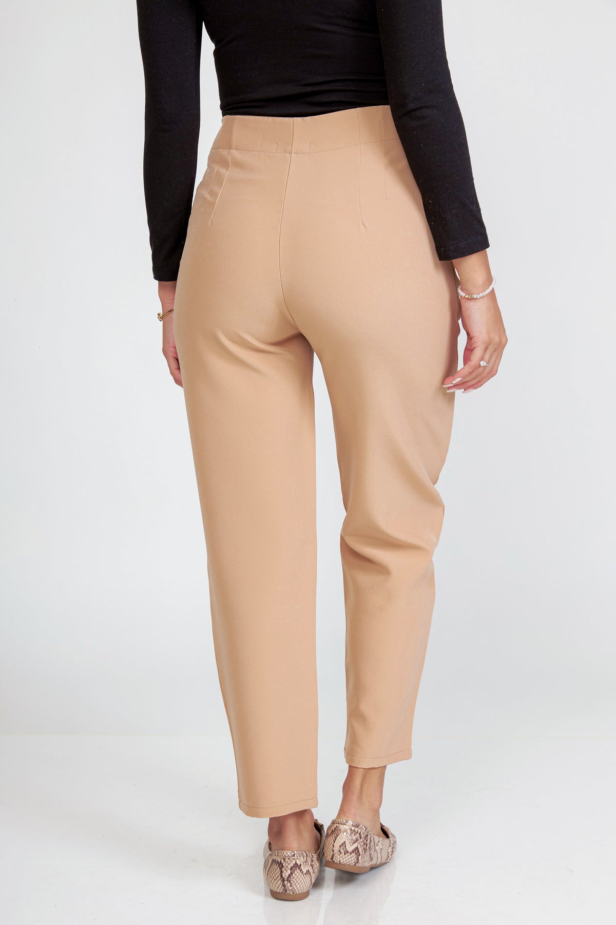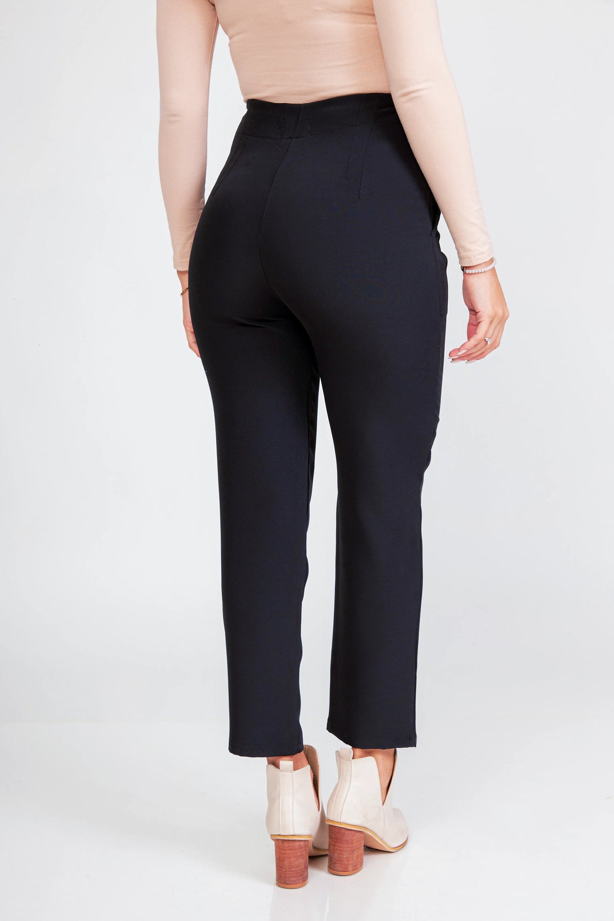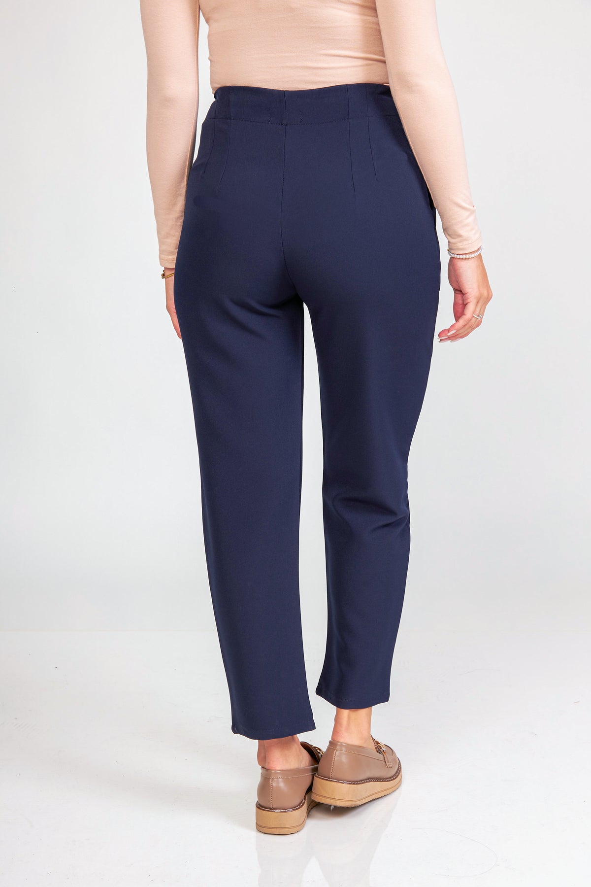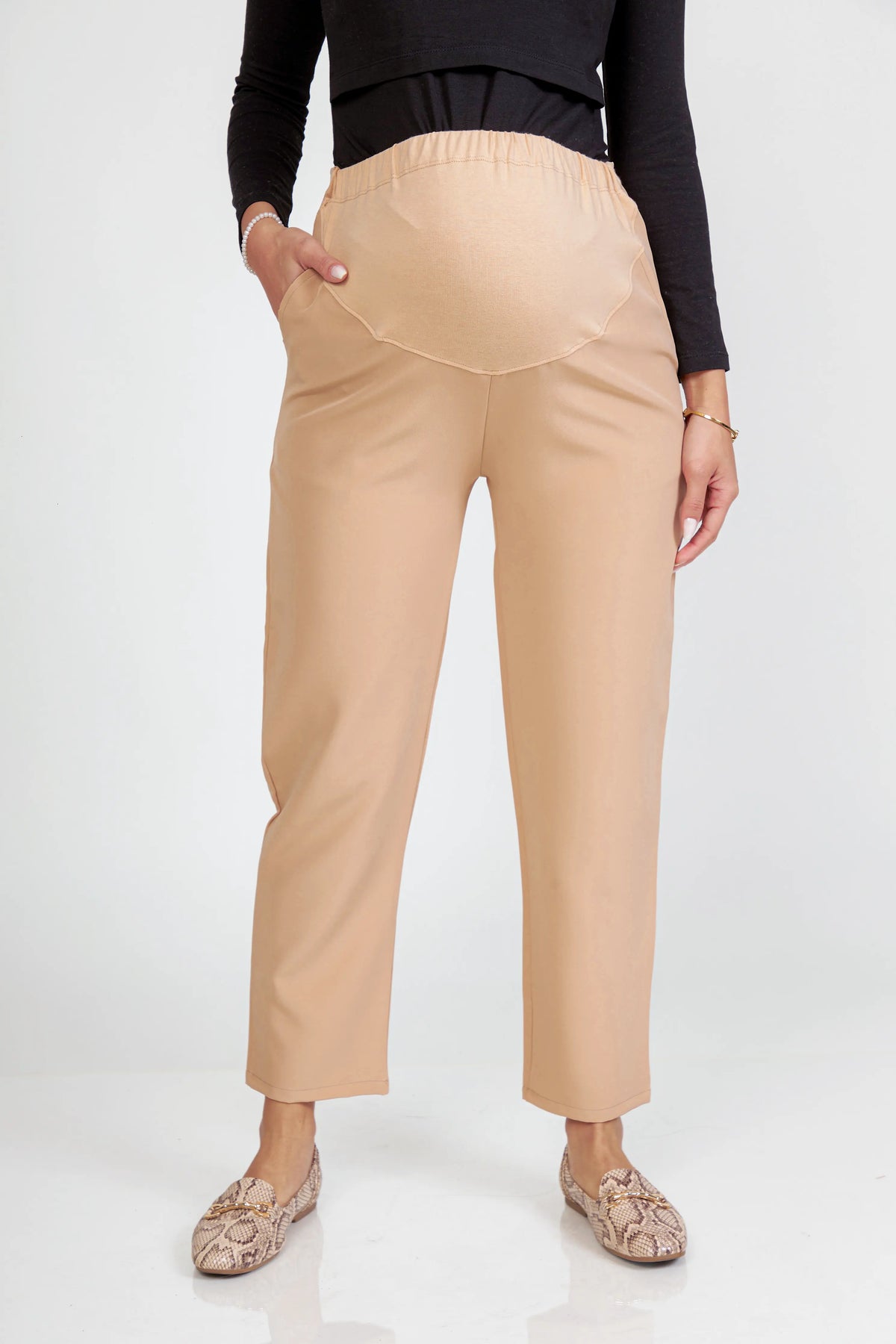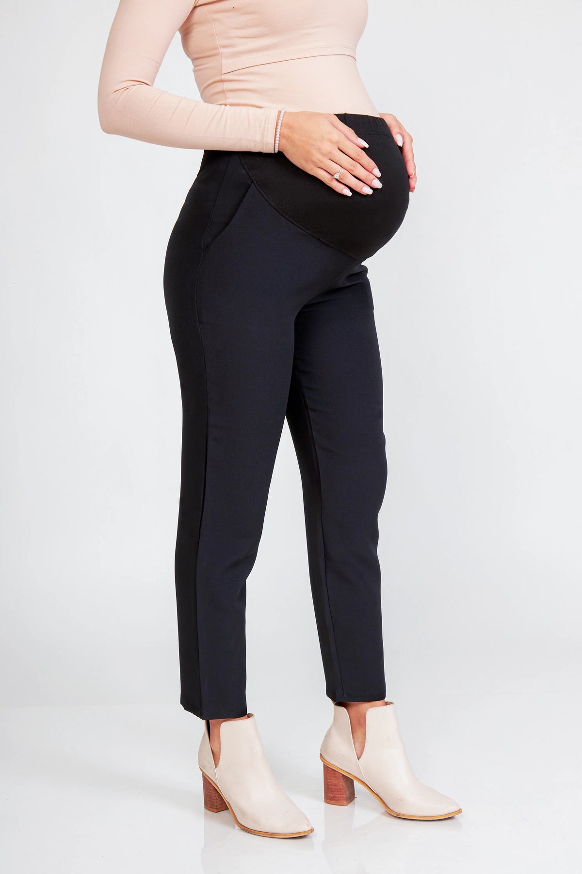 Pantalón con regulador en la cintura. Pantalón Básico de vestir con espalda alta lleva pinzas y vuelta para entallar el cuerpo, en la parte delantera cuenta con una barriguita de algodón que se va adaptando a tu embarazo, lleva bolsillos diagonales en la parte delantero.